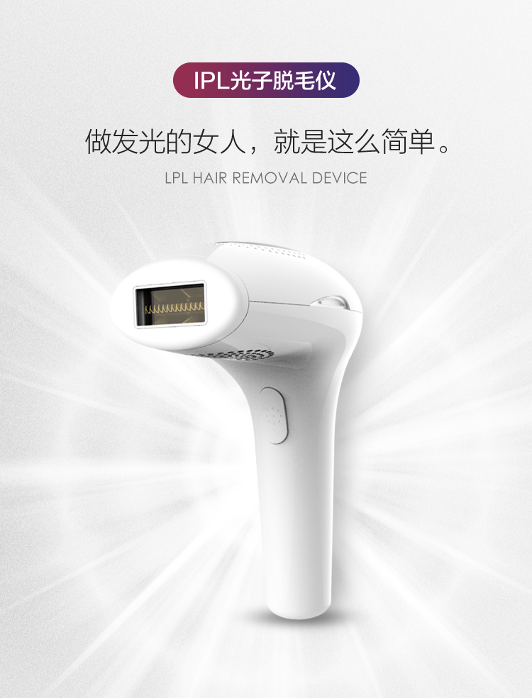 全身脫毛 · 單閃OR連打 · 智能膚色檢測 · 靜毛不反復(fù) · 50萬次閃光